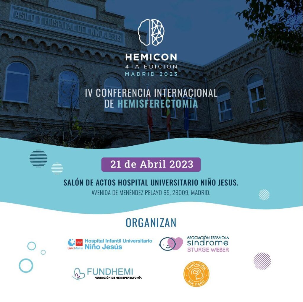 FundHemi, Asociación Síndrome de Sturge Weber y Fundación Sin Daño celebran el 21 de abril 2023 la Cuarta edición HemiCon 2023 sobre hemisferectomía en el hospital del Niño Jesús. La hemisferectomía consiste en la extracción o inhabilitación de un hemisferio cerebral para tratar epilepsia que no responde a otros tratamientos. Tras el éxito cosechado en […]